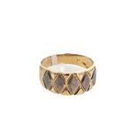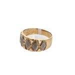 Luce elegante y sofisticada con este hermoso anillo de dos colores en oro de 18 quilates. Su diseño único y moderno lo convierte en la pieza perfecta para agregar un toque de glamour a cualquier look. Hazte con él y hazte notar en cualquier ocasión.