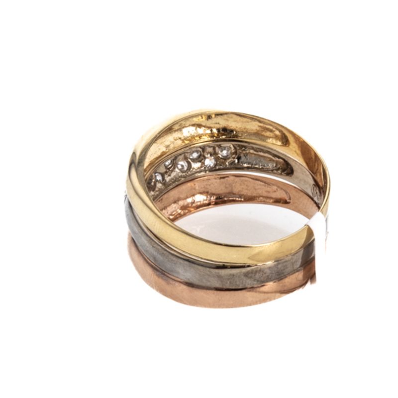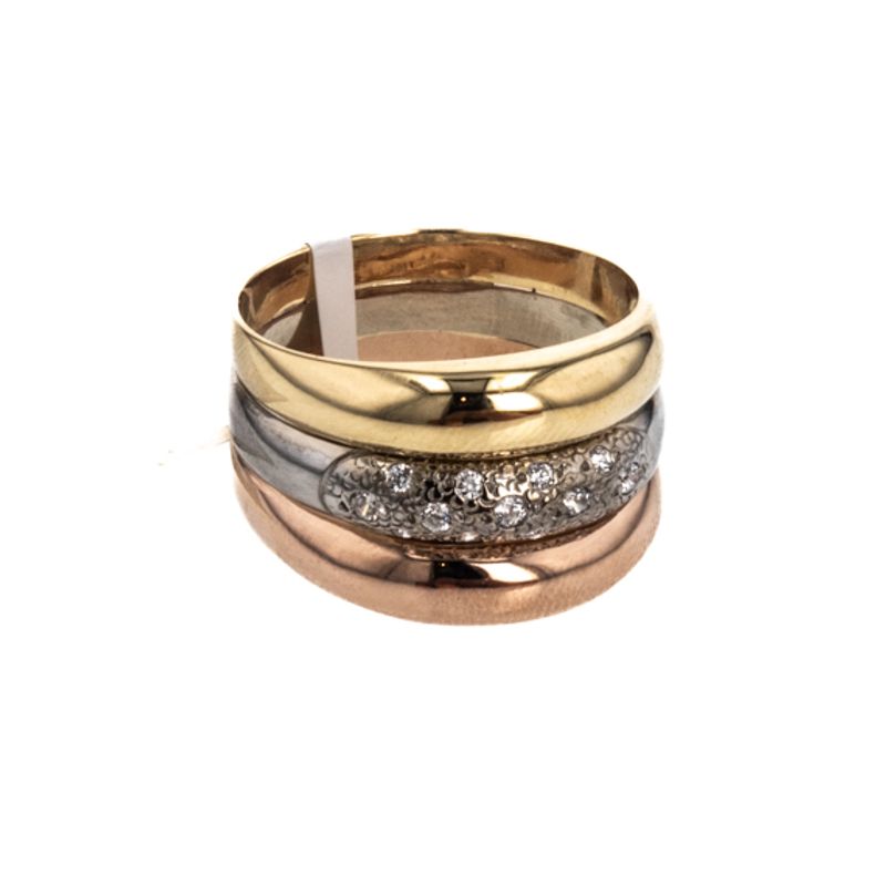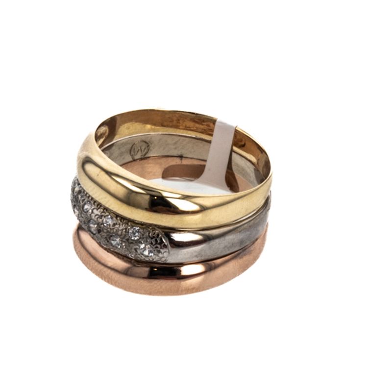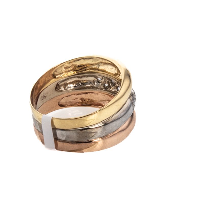 Descubre la elegancia y la distinción con nuestro Anillo de 3 Tonos de 18K, una pieza única que resaltará tu estilo. Fabricado con oro de la más alta calidad, este anillo es perfecto para brillar en cualquier ocasión. ¡Hazte con él ahora y deslumbra a todos!