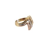 ¡Brilla con estilo con nuestro elegante anillo de tres tonos con zircones de 18 quilates! Este exclusivo diseño en oro de alta calidad es perfecto para cualquier ocasión especial. Sus brillantes detalles resaltarán tu belleza y sofisticación. ¡Atrévete a lucir única!