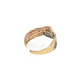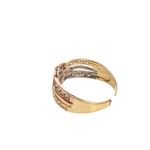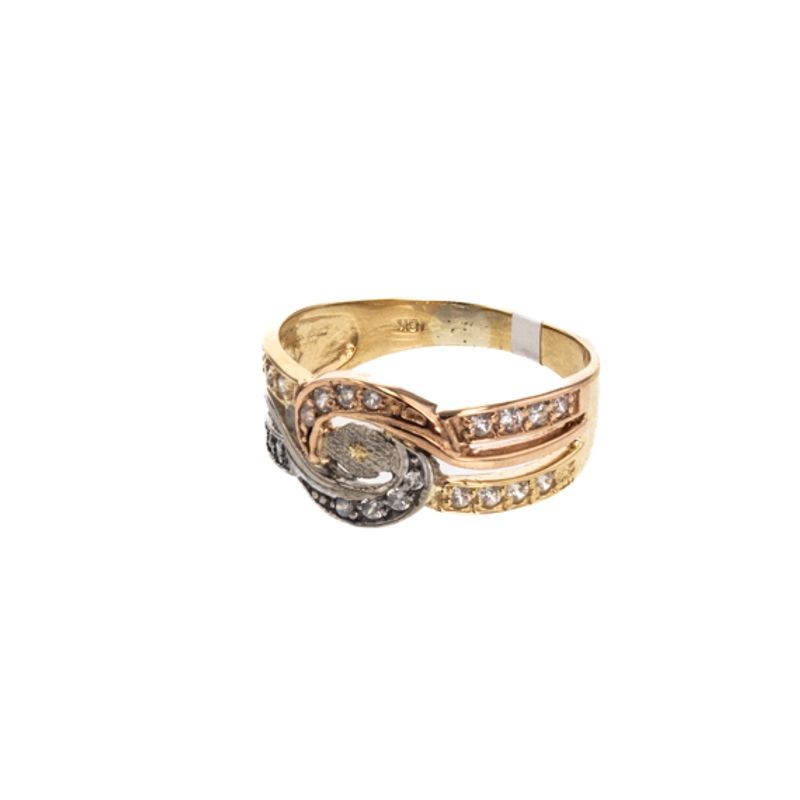 Este elegante anillo de tres tonos con zircones de 18 quilates es la pieza perfecta para resaltar tu estilo y sofisticación. Confeccionado con oro de alta calidad, este anillo es ideal para ocasiones especiales o para el uso diario. ¡Hazte con él y marca la diferencia en cualquier ocasión!