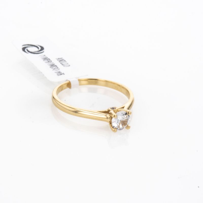 Destaca en tu momento especial con este hermoso anillo de compromiso de 18K. Su diseño elegante y delicado lo convierte en la elección ideal para sellar tu amor eterno.