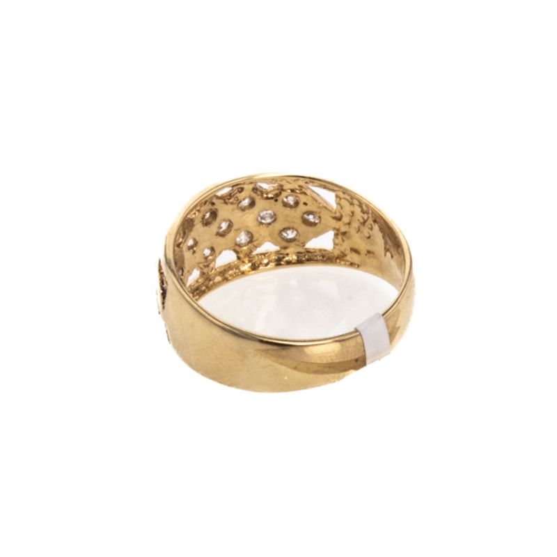 ¡Luce elegante y sofisticada con nuestro exquisito anillo de oro de 18 quilates con zircones! Este anillo único añadirá un toque de brillo a cualquier ocasión, ya sea una cena romántica o una reunión formal. Fabricado con los más altos estándares de calidad, este anillo es la elección perfecta para aquellas que desean destacar su estilo con una pieza de joyería exclusiva y deslumbrante. No pierdas la oportunidad de brillar con este anillo con zircones de oro de 18 K.