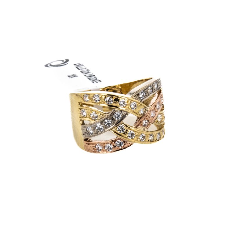 Este elegante anillo con zircones en oro de 18 quilates es el complemento perfecto para cualquier ocasión. Su diseño delicado y sofisticado resalta la belleza de quien lo lleva, convirtiéndolo en una pieza única y exquisita que sin duda captará todas las miradas. Ideal para regalar a esa persona especial y hacerla sentir única y especial.