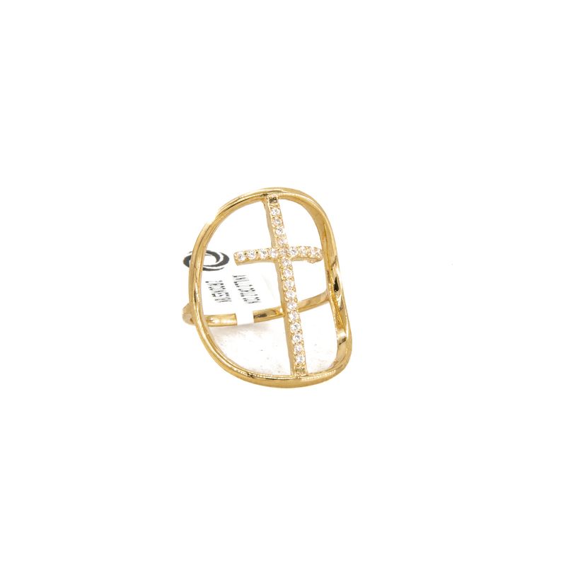 Este elegante anillo está diseñado con una cruz delicada y adornado con deslumbrantes zircones. Fabricado en oro de 18 quilates, este anillo es perfecto para agregar un toque de sofisticación a cualquier outfit. Ideal para lucir en ocasiones especiales o como un regalo significativo para esa persona especial en tu vida.