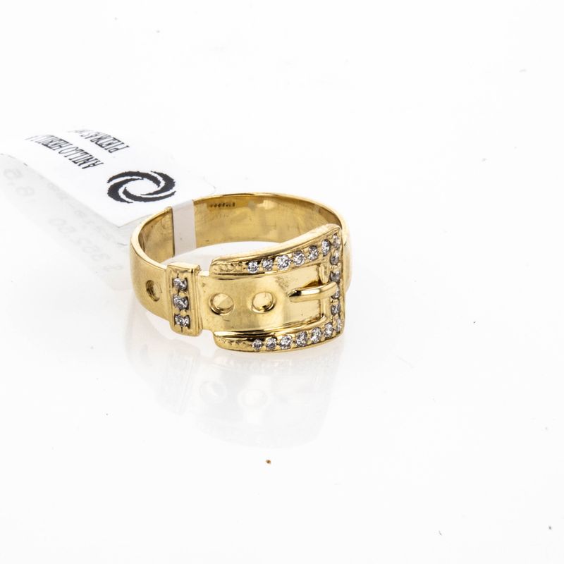 ¡Luce elegante y sofisticada con nuestro hermoso anillo de hebilla con piedras en oro de 18K! El diseño único y brillante de este anillo lo convierte en el complemento perfecto para cualquier ocasión.