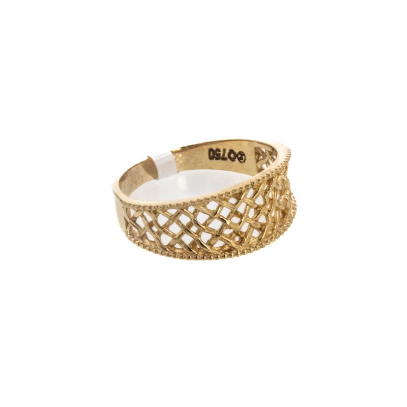 Refleja tu estilo único con este elegante anillo de malla en oro de 18 quilates. Su diseño moderno y sofisticado lo convierte en la pieza perfecta para completar cualquier look, ya sea de día o de noche. ¡Hazlo tuyo y brilla con luz propia!