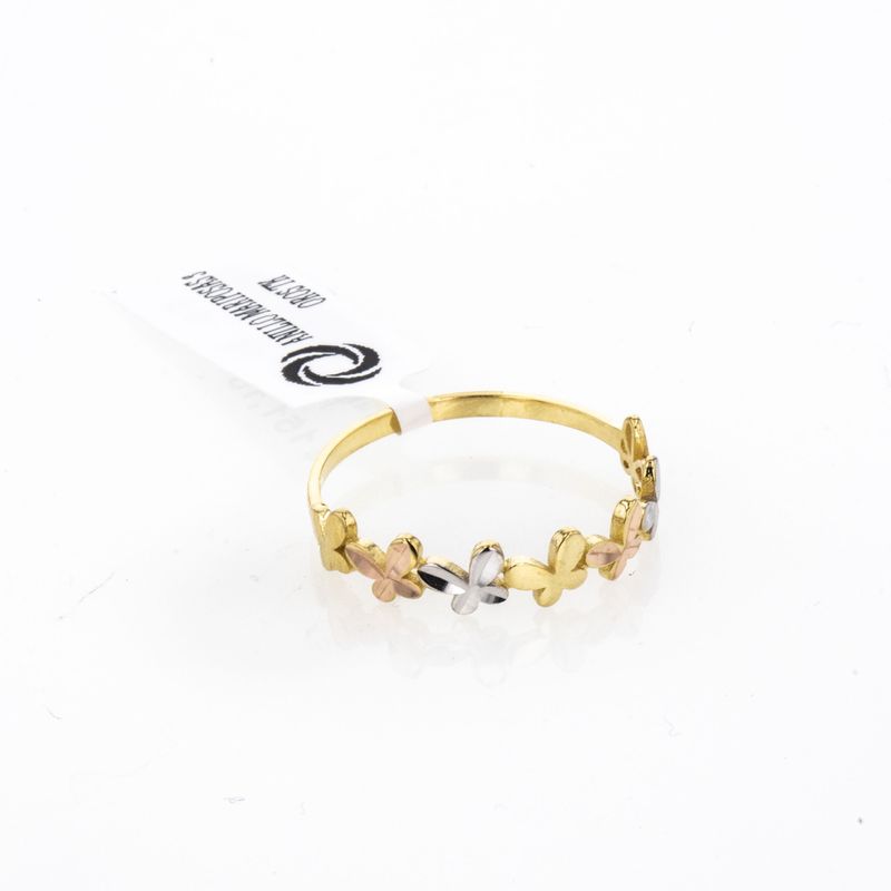 Descubre la elegancia y la delicadeza del Anillo Mariposa 3 Oros TK. Diseñado en tres tonos de oro con brillantes incrustados, este anillo se convertirá en el centro de todas las miradas. Su diseño único y sofisticado lo convierte en la joya perfecta para completar cualquier outfit, ya sea para una ocasión especial o para el día a día. Atrévete a lucir esta pieza excepcional y añade un toque de glamour a tu estilo único.