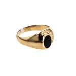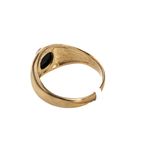 Este anillo de oro de 18 quilates con una elegante piedra negra y zircones incrustados es la elección perfecta para lucir con sofisticación y estilo en cualquier ocasión. Su diseño único y atemporal lo convierte en una pieza imprescindible en tu colección de joyas.