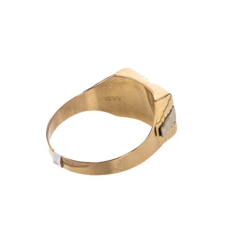 Este elegante anillo de oro 18K con una placa adornada con zircones es el accesorio perfecto para agregar un toque de sofisticación a cualquier conjunto. Su diseño moderno y brillante lo convierte en una pieza única y deslumbrante que seguramente llamará la atención.