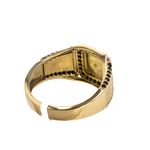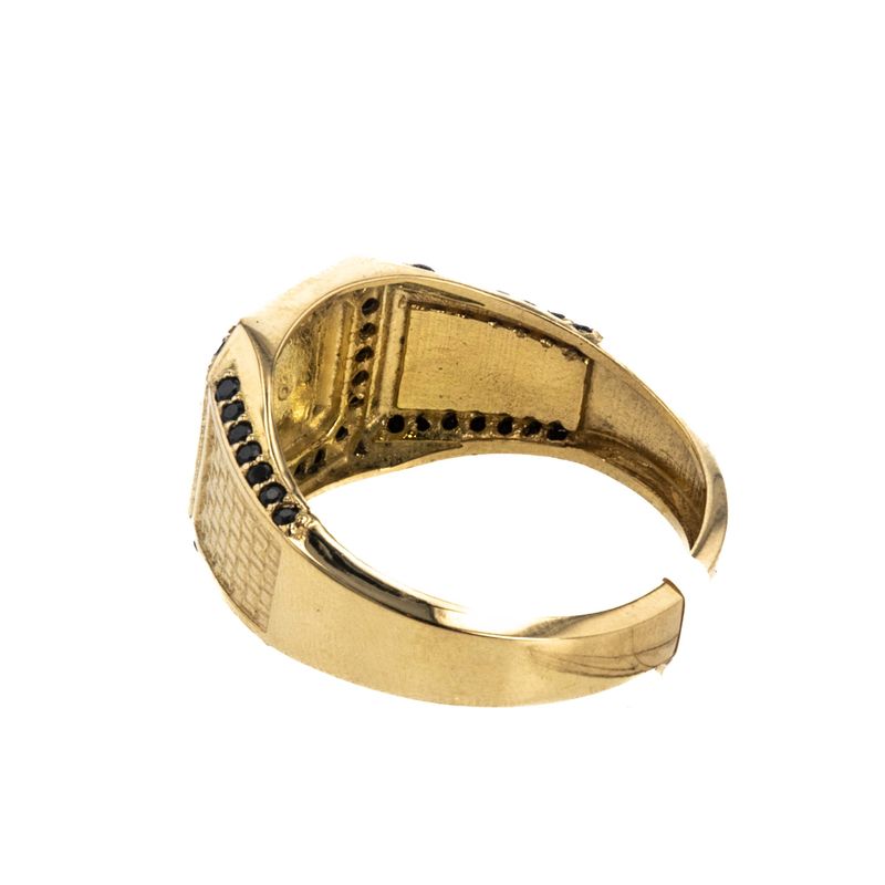 Luce elegante y sofisticada con este impresionante anillo de placa con zircones en oro de 18K. Perfecto para añadir un toque de brillo a tu look diario o para completar un outfit de noche. La mezcla de la calidad del material y la belleza de los zircones hacen de esta joya una pieza única que no puede faltar en tu colección.