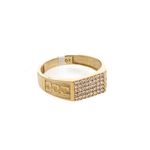 Descubre la elegancia y sofisticación de nuestro exquisito anillo placa con zircones en oro de 18 quilates. Con un diseño exclusivo y detalles brillantes, esta pieza es el complemento perfecto para cualquier ocasión especial. Hazte con esta joya única y resalta tu estilo con un toque de lujo y distinción.