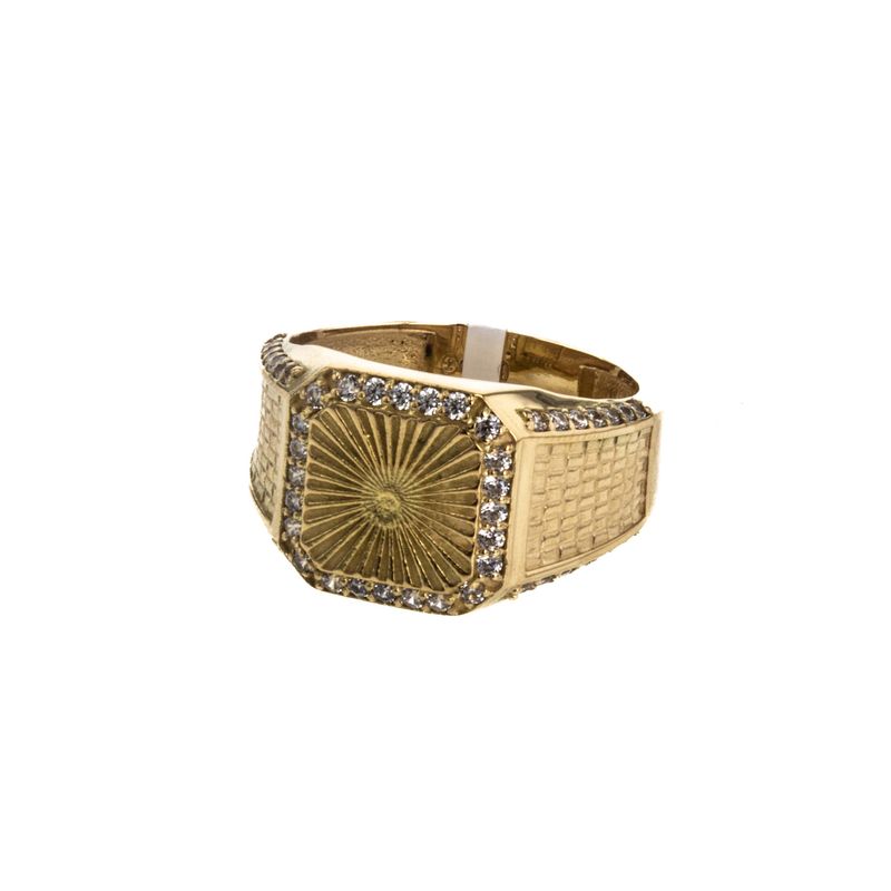 Resalta tu estilo con este elegante anillo de placa en oro de 18K, adornado con brillantes zircones. Su diseño único y sofisticado te hará lucir radiante en cualquier ocasión.