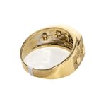 Descubre la elegancia y distinción con nuestro exquisito anillo de placa en oro de 18K con incrustaciones de zircones brillantes. Perfecto para dar un toque de sofisticación a cualquier outfit.