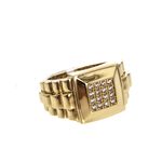"Eleva tu estilo con nuestro exclusivo anillo de placa con zircones de 18k. Creado con materiales de alta calidad, este exquisito diseño es el complemento perfecto para lucir elegante y sofisticada en cualquier ocasión. Atrévete a brillar con esta joya única."