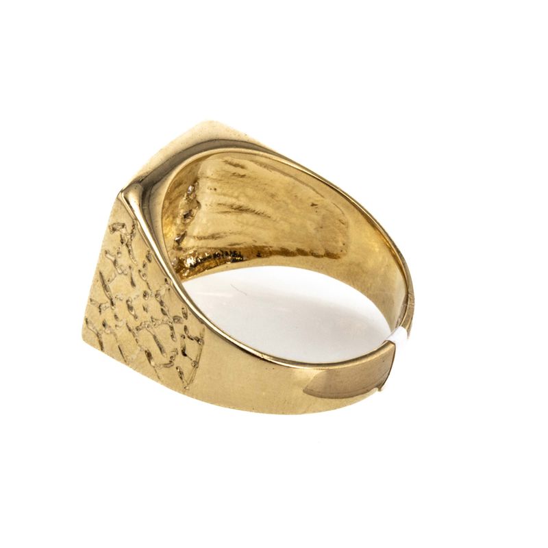 Luce elegante y con estilo con este hermoso anillo de placa con crucifijo, adornado con brillantes zircones. Fabricado en oro de 18K, este anillo es el complemento perfecto para cualquier outfit.