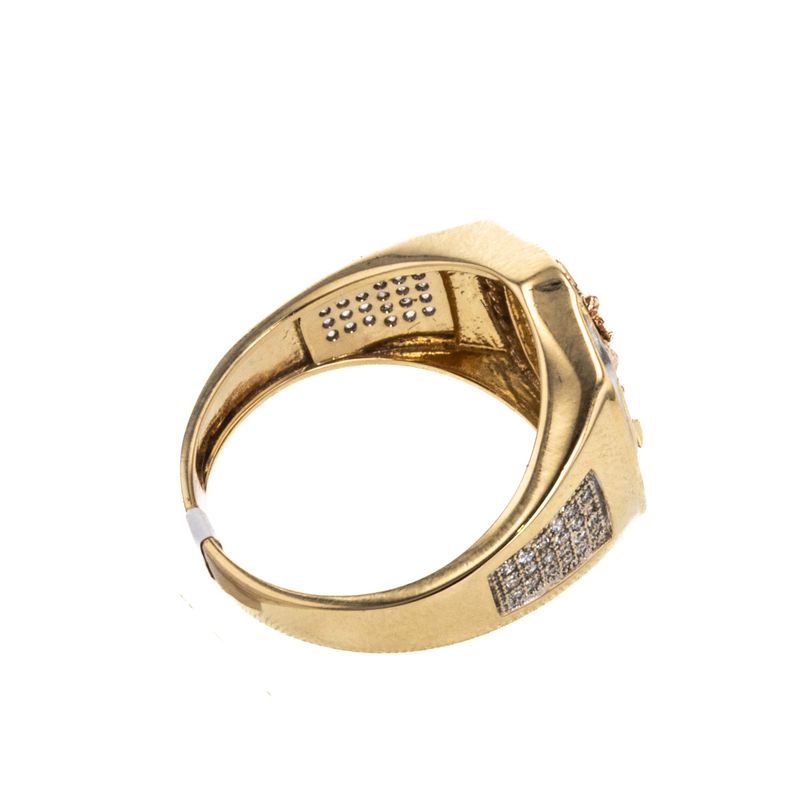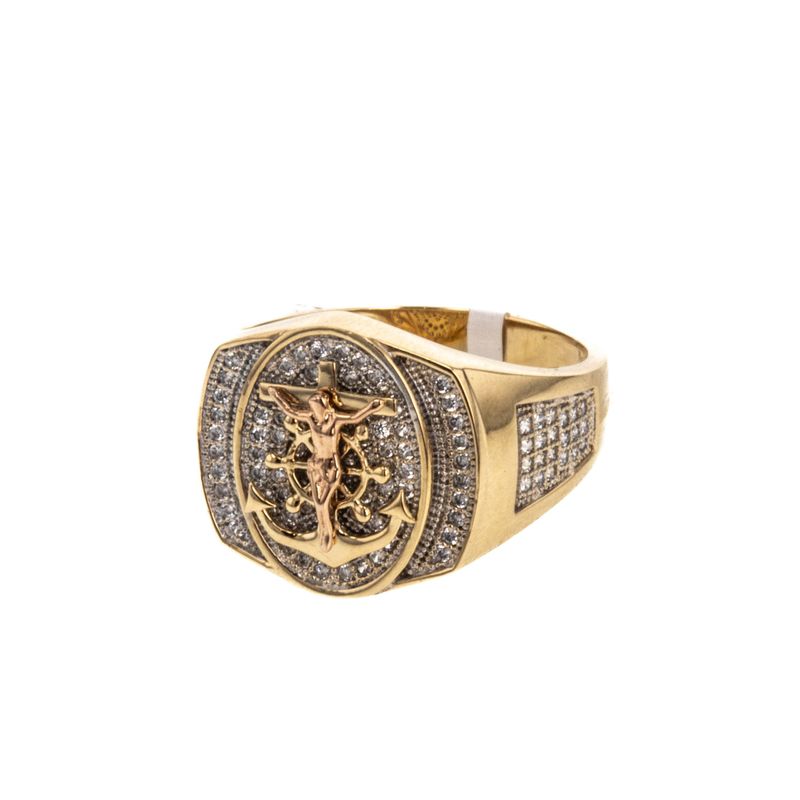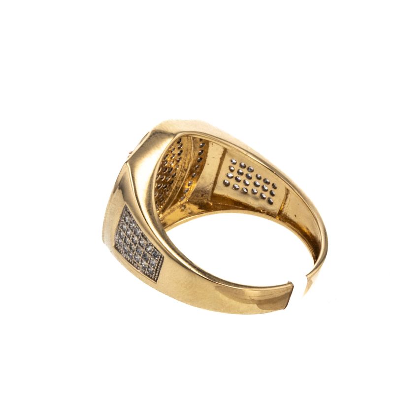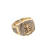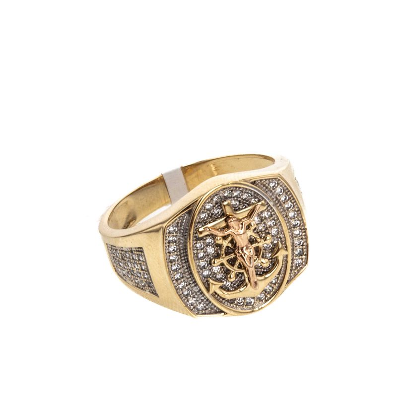 Descubre la elegancia y sofisticación de nuestro anillo de placa con crucifijo y zircones de 18K, una pieza única que complementará perfectamente tu estilo. Hecho con los más altos estándares de calidad, este anillo es una joya que deslumbrará en cualquier ocasión.