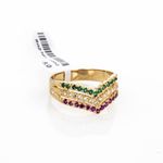 Este elegante anillo de oro de 18 quilates está engastado con zircones de colores brillantes que capturan la luz de manera deslumbrante. Con un diseño único y sofisticado, este anillo es el complemento perfecto para cualquier ocasión especial. Ya sea para darle un toque de color a tu look diario o para lucirlo en una ocasión formal, este anillo es una pieza imprescindible en tu joyero. Además, su calidad y estilo atemporal aseguran que será una joya que te acompañará durante toda la vida.