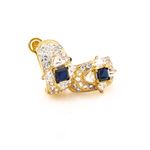 Descubre la elegancia y distinción con estos impresionantes aretes cortos de 18k con piedra azul. Un complemento perfecto para resaltar tu estilo único y sofisticado en cualquier evento especial.