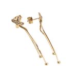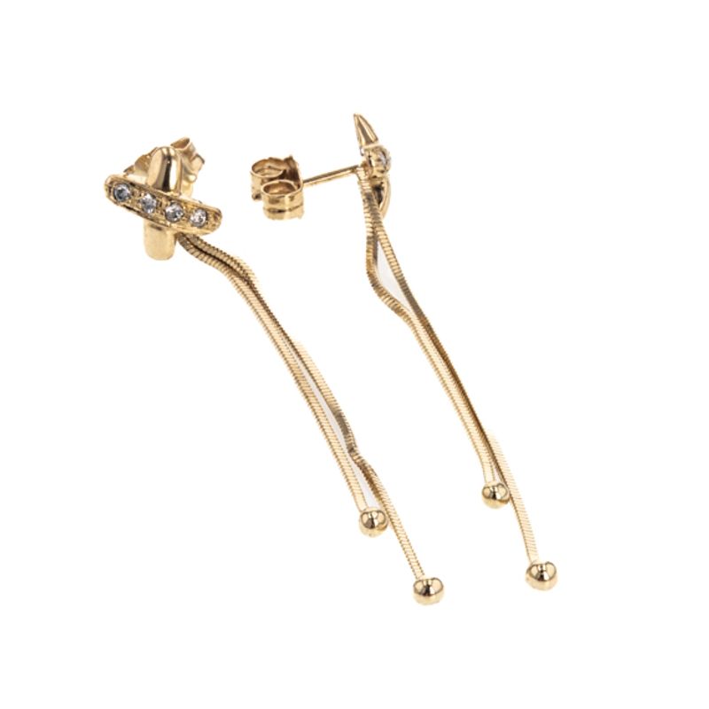 Estos elegantes aretes topos largos de 18K son el complemento perfecto para cualquier ocasión. Su diseño sofisticado y atemporal los convierte en un accesorio imprescindible en tu joyero. Dale un toque de lujo a tu look con estas hermosas piezas de oro.