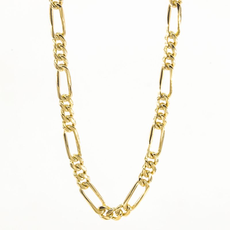Realza tu estilo con esta elegante cadena de 18 quilates. Con un diseño clásico de eslabones 3x1, esta joya es perfecta para lucir sola o acompañada de tu colgante favorito. Hecha con materiales de alta calidad, esta cadena es el complemento perfecto para cualquier atuendo, ya sea casual o formal. Haz que tu look brille con esta deslumbrante pieza de joyería.
