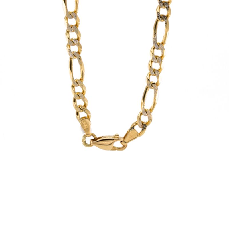 Disfruta de la elegancia y la distinción con nuestra cadena 3x1 de dos tonos de 18k. Un complemento imprescindible para cualquier ocasión, fabricado con oro de la más alta calidad para garantizar durabilidad y estilo. Una pieza única que puedes lucir con orgullo.