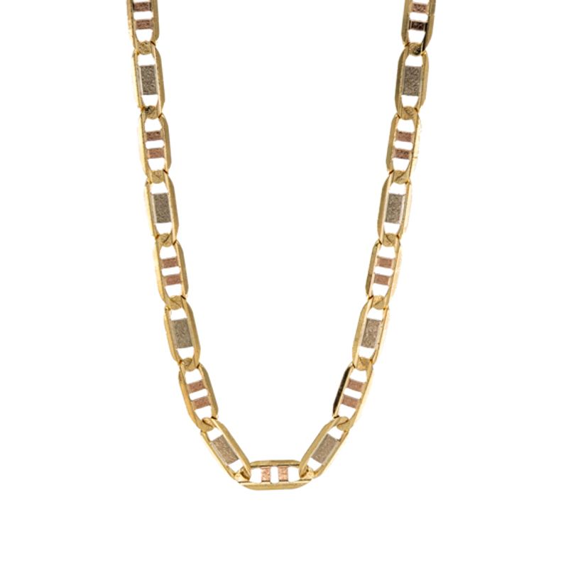Luce elegante y distinguida con nuestra cadena ancla de 3 tonos de oro 18K. El complemento perfecto para cualquier ocasión, su diseño único y llamativo te hará brillar con estilo.