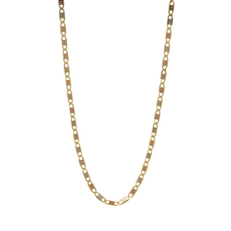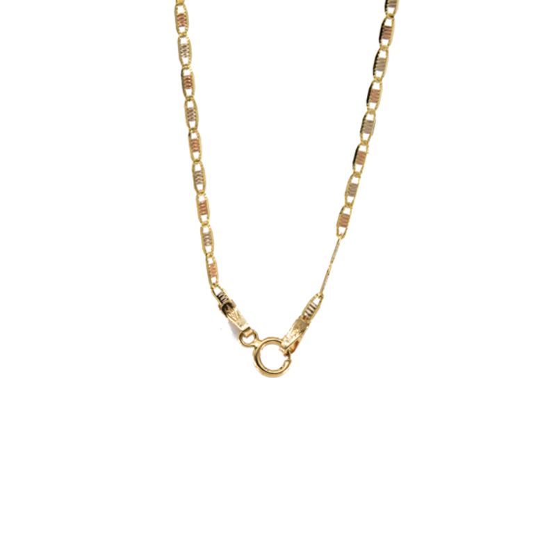 Descubre la elegancia y sofisticación de nuestra cadena ancla de 3 tonos en oro de 18k. Con un diseño único y atemporal, esta joya es perfecta para complementar cualquier look con un toque de lujo. ¡Hazte con la tuya hoy y destaca con estilo!