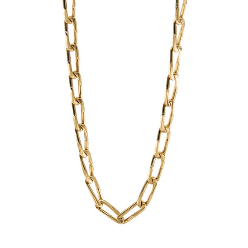 Encuentra la elegancia en su máxima expresión con nuestra cadena Bilbao de 18 quilates, un complemento perfecto para cualquier ocasión. El lujo y la sofisticación se unen en esta pieza única.