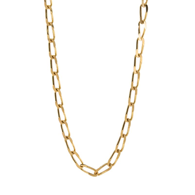 Sumérgete en el lujo con nuestra exclusiva cadena Bilbao de 18K, un accesorio elegante y sofisticado que elevará tu estilo a otro nivel. Esta pieza única de oro es ideal para cualquier ocasión, desde una reunión informal hasta una noche especial.