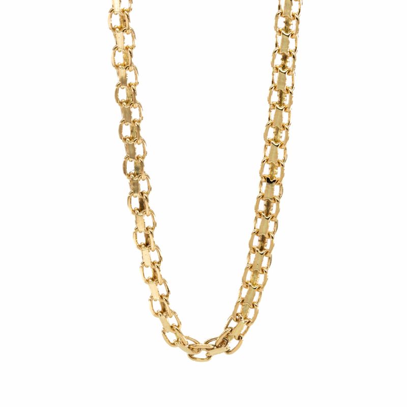 La cadena Bismark de 18K es el complemento perfecto para resaltar tu estilo y elegancia. Su diseño elaborado en oro de alta calidad brinda un toque de lujo a cualquier atuendo, convirtiéndola en una pieza imprescindible en tu joyero. Ya sea para uso diario o para ocasiones especiales, esta cadena sin duda será el centro de todas las miradas.