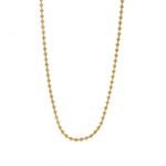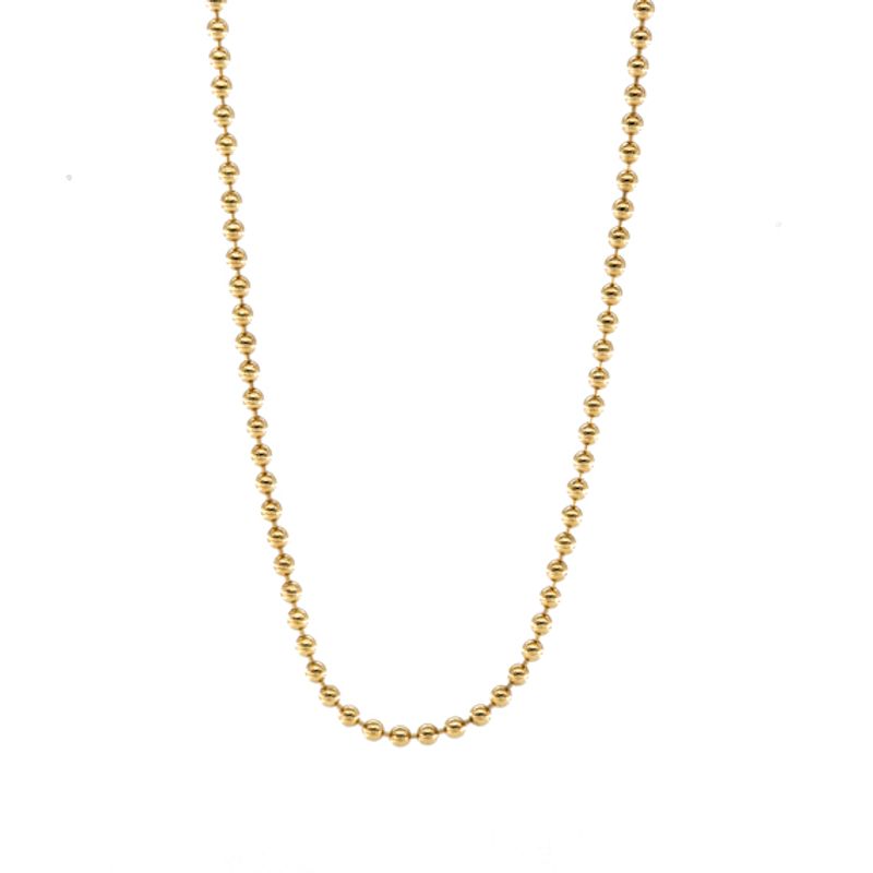 ¡Luce elegante y sofisticada con nuestra cadena de bolitas de oro de 18K! Perfecta para combinar con cualquier outfit, esta joya es el complemento ideal para destacar tu estilo único y brillar con luz propia.