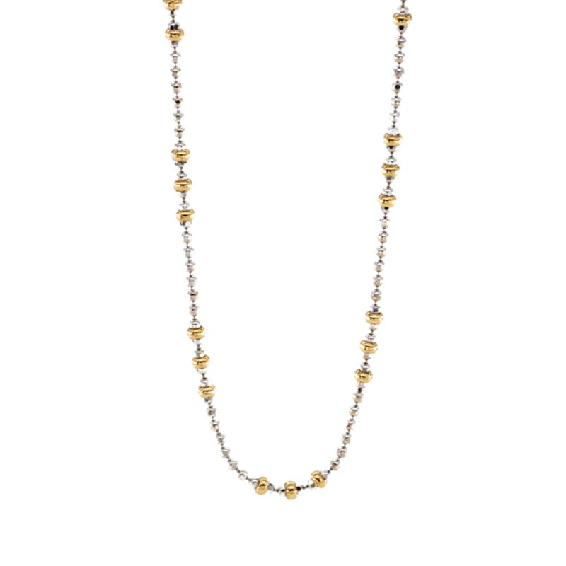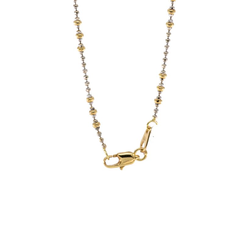 La cadena Bolitas 2 Tonos de 18K es el accesorio perfecto para darle un toque elegante y sofisticado a tu outfit. Confeccionada en oro de alta calidad, esta cadena es versátil y atemporal, ideal para combinar con cualquier estilo. Su diseño de bolitas en dos tonos añade un toque de modernidad y estilo único a la pieza. Atrévete a lucirla sola o combinada con otros collares para un look más llamativo y trendy. Esta cadena es la elección ideal para aquellas mujeres que buscan un diseño clásico con