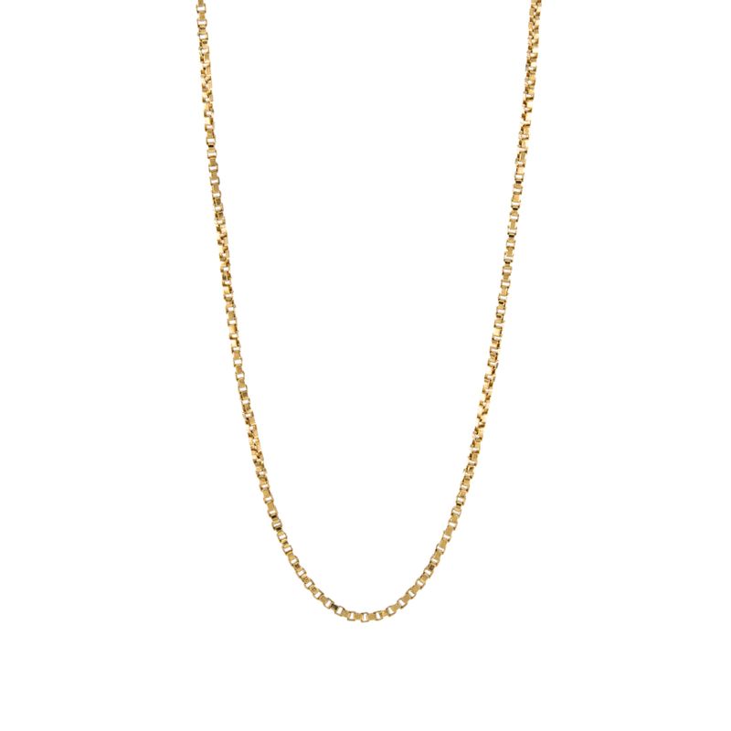 Encuentra la cadena perfecta para complementar cualquier outfit con nuestra cadena caja de oro de 18K. Su diseño clásico y elegante la convierte en una pieza imprescindible en tu colección de joyas.