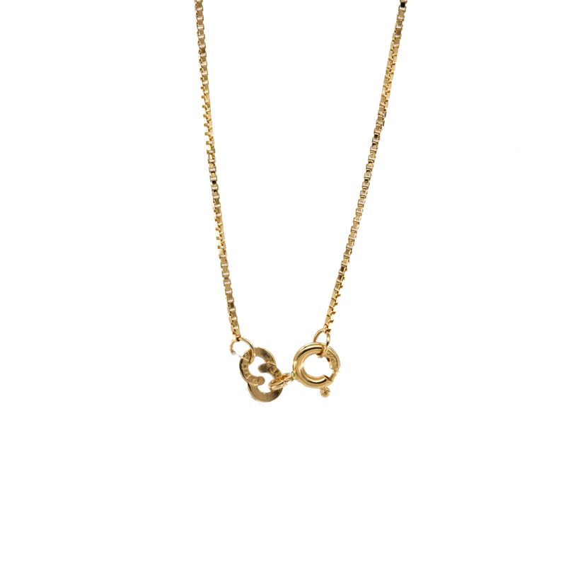 Luce elegante y sofisticada con nuestra cadena caja con dijes de oro 18K. Cada dije está meticulosamente diseñado para complementar tu estilo único. Con esta joya, destacarás en cualquier ocasión.