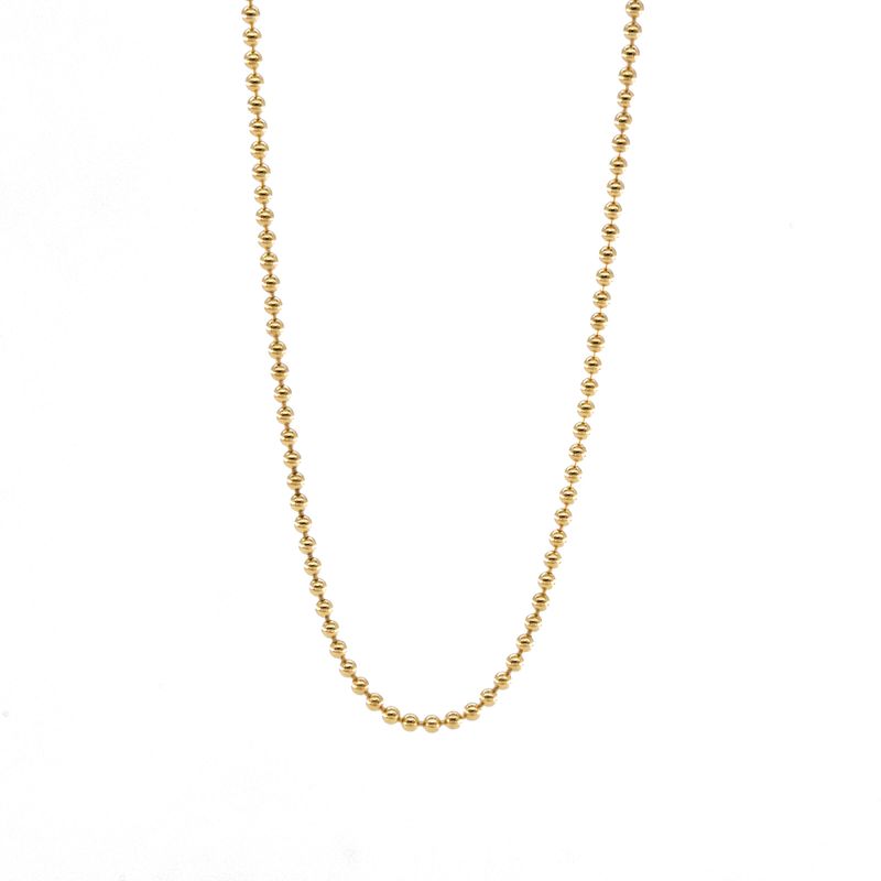 Eleva tu estilo con esta cadena con bolitas de oro de 18K, un diseño elegante y atemporal que complementará cualquier outfit. Hecha con materiales de alta calidad, esta cadena es ideal para uso diario o para ocasiones especiales.