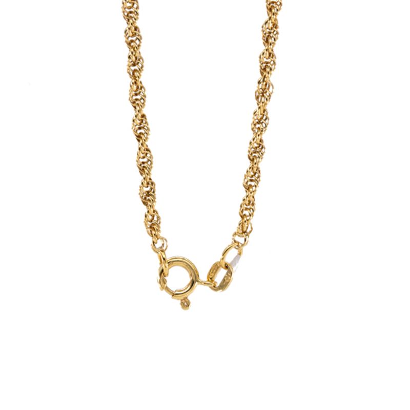 La cadena cordón de oro de 18K es el complemento perfecto para cualquier ocasión, ya sea casual o elegante. Con su brillo y elegancia, esta joya demuestra tu buen gusto y estilo. Fabricada con materiales de alta calidad, esta cadena te acompañará por años resaltando tu belleza y distinción.