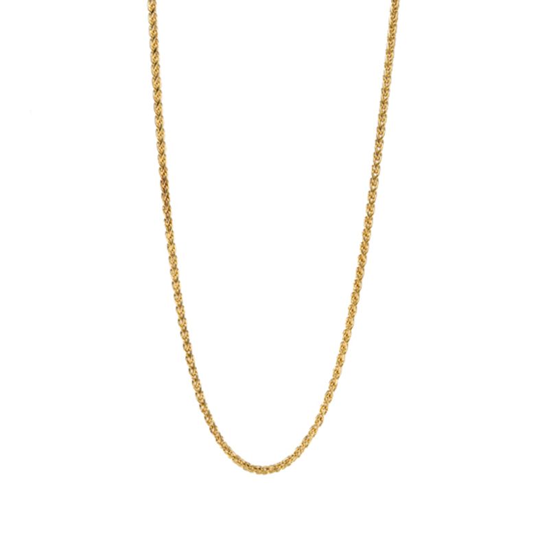 Haz una declaración de estilo con nuestra cadena cordon de oro de 18K. Esta pieza exclusiva y elegante es perfecta para complementar cualquier look. Disponible en varias longitudes para adaptarse a tu estilo único.