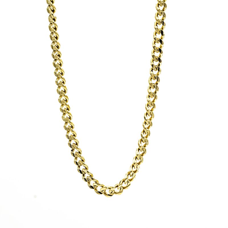 Haz una declaración de estilo con esta cadena cubana de oro de 18 quilates. Su diseño clásico y elegante lo convierten en el complemento perfecto para cualquier ocasión. Confeccionado con materiales de alta calidad, esta cadena es sin duda una pieza imprescindible en tu colección de joyas. Ya sea que la uses sola o combinada con otros accesorios, esta cadena te hará lucir sofisticado y elegante.