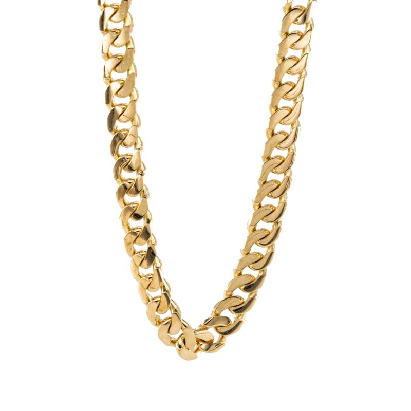 Este elegante collar de oro de 18K es el complemento perfecto para cualquier ocasión. La cadena cubana le brinda un toque de glamour y sofisticación a tu look, haciéndote brillar con luz propia.