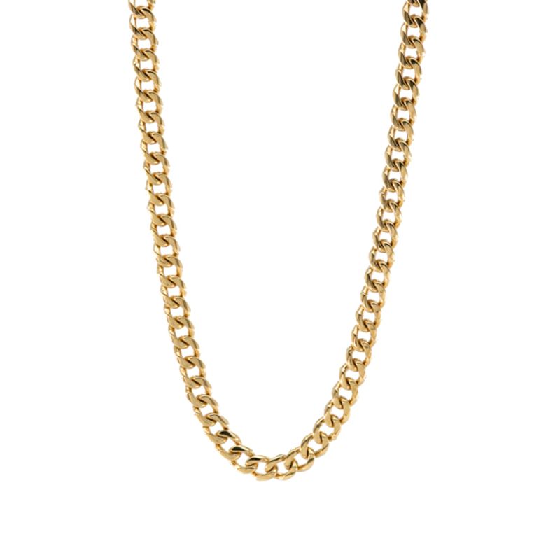 Encuentra la elegancia y sofisticación que buscas con nuestra exquisita cadena cubana de 18k. Hecha para durar toda la vida, este accesorio de lujo complementará cualquier outfit y te hará brillar.