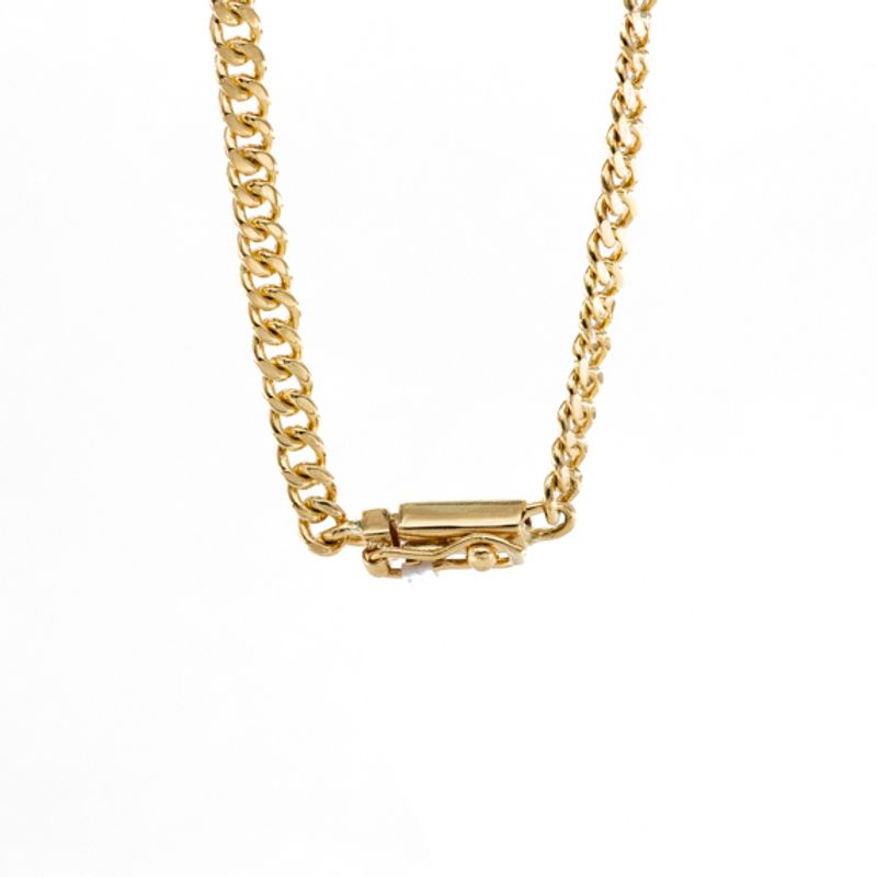 La cadena cubana de 18K es una joya elegante y atemporal que añadirá un toque de lujo a cualquier outfit. Confeccionada con oro de la más alta calidad, esta cadena es perfecta para uso diario o para ocasiones especiales. Su diseño versátil la hace ideal para combinar con otros accesorios y crear looks únicos y sofisticados.
