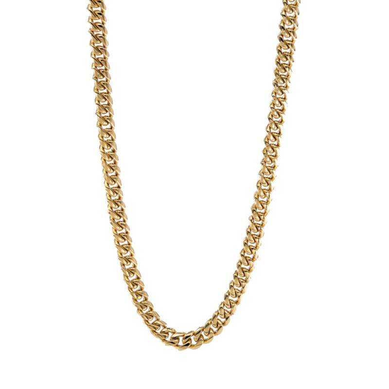 Descubre la imponente elegancia de nuestra Cadena Cubana 18K, una pieza de joyería única que te hará brillar en cualquier ocasión. Fabricada con oro de alta calidad, esta cadena es el complemento perfecto para un estilo sofisticado y moderno. ¡Hazte con ella y destaca con un toque de lujo y distinción!