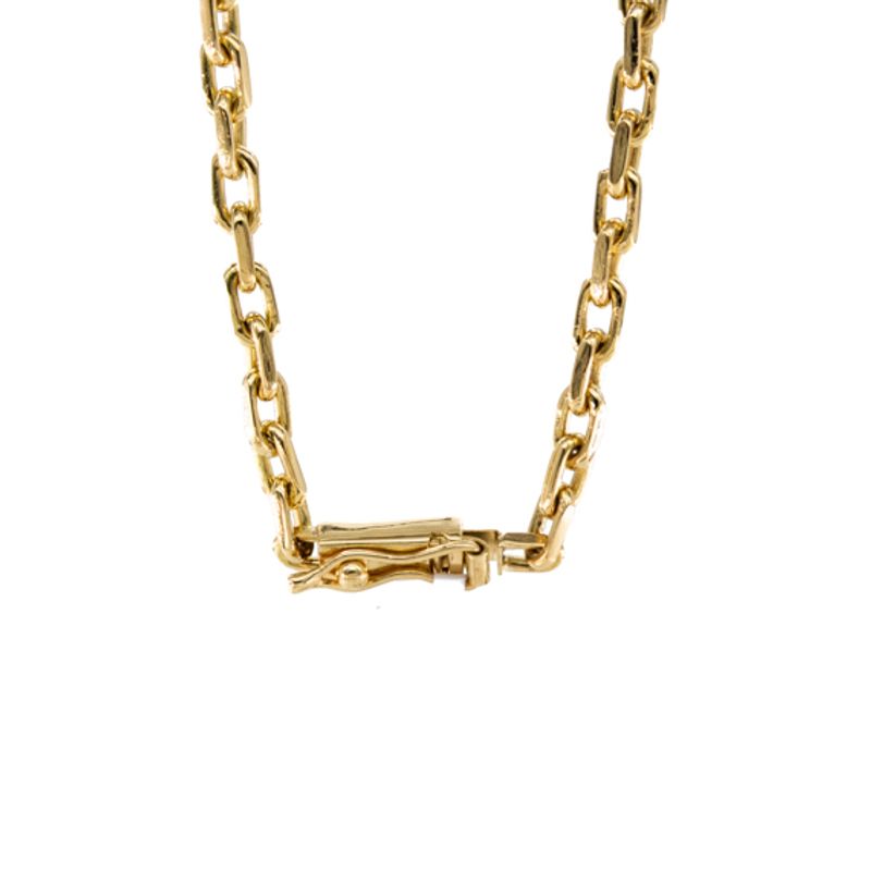 Esta elegante cadena forzada de 18K es el complemento perfecto para resaltar tu estilo y personalidad. Su diseño único y acabado brillante la convierten en una pieza imprescindible en tu colección de joyas. Ideal para lucir sola o acompañada de tu colgante favorito, esta cadena es sin duda un tesoro que perdurará en el tiempo.
