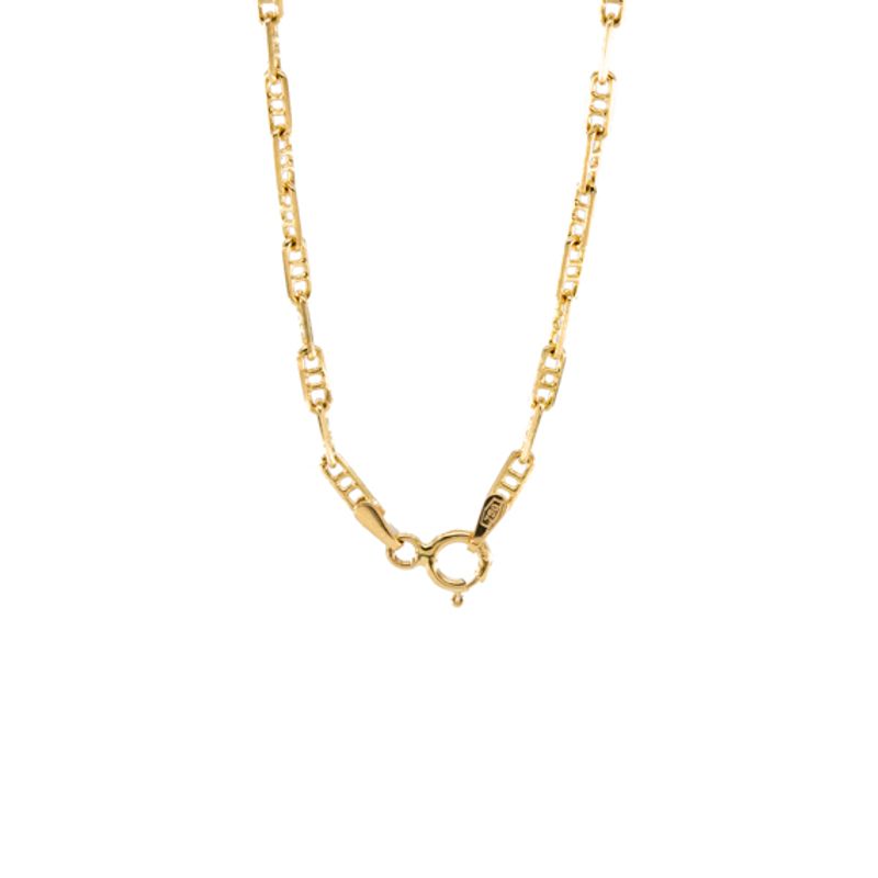 Descubre la elegancia y sofisticación de nuestra cadena forzada de oro de 18K. Una pieza única y exclusiva que agregará brillo y estilo a cualquier outfit. ¡Hazte con la tuya hoy mismo y deslumbra!