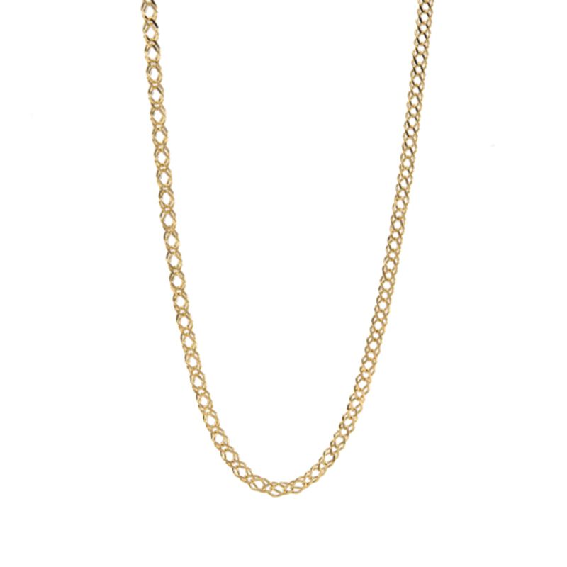 Potencia tu elegancia con nuestra cadena rombo de oro de 18K. Con un diseño clásico y sofisticado, es el complemento perfecto para cualquier ocasión. ¡Hazte con ella y deslumbra!