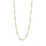 Luce elegante y sofisticada con nuestra espectacular cadena singapur de 18K, un complemento perfecto para cualquier ocasión. Su diseño sencillo y llamativo te hará brillar con luz propia.