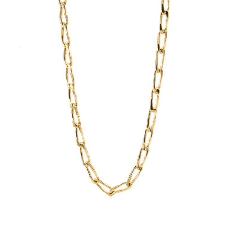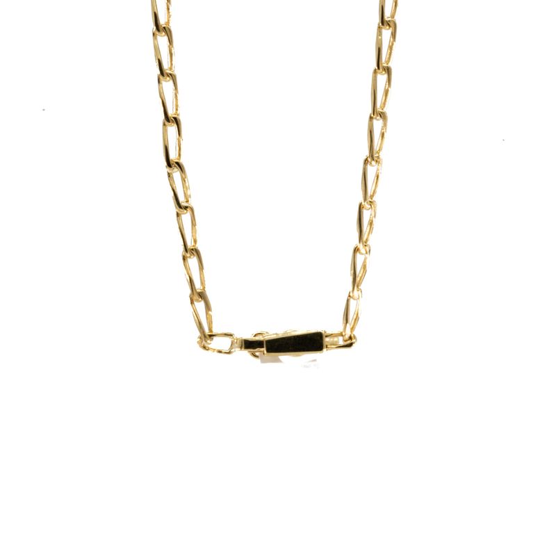Lleva contigo un toque de elegancia y sofisticación con nuestra cadena tejido Bilbao de 18K. El diseño trenzado y la calidad del oro hacen de esta pieza un accesorio único que complementará cualquier atuendo. Ideal para lucir en cualquier ocasión especial o para regalar a alguien especial.