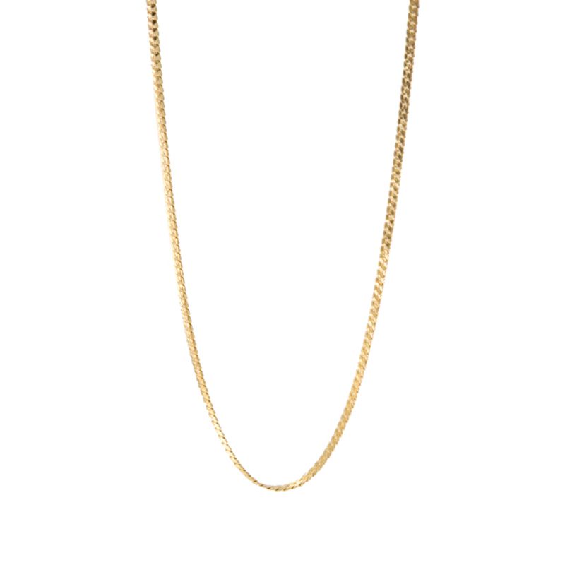 Esta elegante cadena de oro de 18 quilates tejido lomo corvina es el complemento perfecto para cualquier ocasión. Con un diseño único y sofisticado, esta pieza de joyería de alta calidad añadirá un toque de lujo a tu estilo.