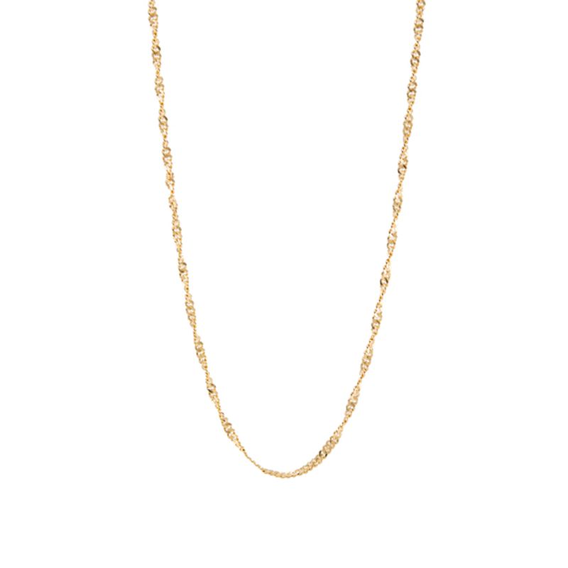 Descubre nuestra exquisita cadena tejido singapur, elaborada en elegante oro de 18 quilates. Su diseño delicado y sofisticado complementará perfectamente cualquier outfit, siendo la pieza ideal para añadir un toque de lujo a tu estilo.