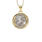 Magnífico dije de bautizo de dos tonos en oro de 18K, perfecto para regalar en ocasiones especiales. Su diseño elegante y sutil lo convierte en una pieza única que seguro impresionará a quien lo reciba.